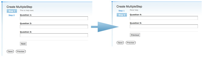 If you prefer horizontal tabs, then skip this step. However, if you have more than a few steps in your form, the number of horizontal tabs is likely to span more than the width of your site’s layout, and will begin to stack on top of each other in a rather unappealing manner. In this case, vertical tabs that run along the side of the form are a better choice. Fortunately this can be accomplished using just some CSS to override and change the position of the tabs. This is a bit of a messy way to do this, but it will work for now; the next release of Tabs module will evidently come with a vertical tabs option by default. Open the style.css file of your theme and add the following code to override the default horizontal tab layout (this works for certain with the standard Garland theme, but may require adjustments for other themes): /* Turns off the clear:both in the span from Tabs module's drupal-tabs.css, so the form will float to the right of the tabs */ #tabs-fieldgroup_tabs span.clear { clear: none; } /* Sets spacing between the tabs and the form */ #tabs-fieldgroup_tabs ul.primary { margin: 0 20px 0 0; } /* Makes tabs vertical and sets padding below each */ #tabs-fieldgroup_tabs ul.primary li { margin: 0; padding: 0 0 12px 0; display: block; } /* Prevents the form fields from wrapping under the vertical tabs */ .node-form .ui-tabs-panel { float: left; } /* Clears the float so the Save & Preview buttons stay below the form */ .node-form div.admin { clear: both; } /* Ensures the float clears when the admin is viewing the page too */ .node-form fieldset { clear: both; } /* More tasteful separator line before prev/next buttons*/ .tabs-nav-link-sep { border-top: 1px #E2E2E2 solid; margin-top: 10px; margin-bottom: 10px } /* Overriding Tabs module's drupal-tabs.css, more tasteful prev/next buttons */ .tabs-nav-previous, .tabs-nav-next { font-size: 12px; font-weight: normal; float: left; border: 1px solid #ADADAD; padding: 1px 7px; margin-bottom: 5px; cursor: pointer; background-color: #E2E2E2; } /* Changes hover state of the prev/next buttons */ a:hover.tabs-nav-previous, a:hover.tabs-nav-next { text-decoration: none; color: #FFFFFF; }