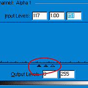 Open the Channels palette and create a new channel. Fill the selection in with white, and deselect by pressing Cmd+D (PC: Ctrl+D). Now go to Filter » Blur » Gaussian Blur and use a setting of about 3.5. Click OK. Next go to Image » Adjust » Levels and drag the two bottom triangles towards the center until the button looks nice and smooth (see the example below). Click OK when done. Hold Command (PC: Control) and click on the “Alpha 1” channel to select it. Click the Layers tab to return to the Layers Palette.
